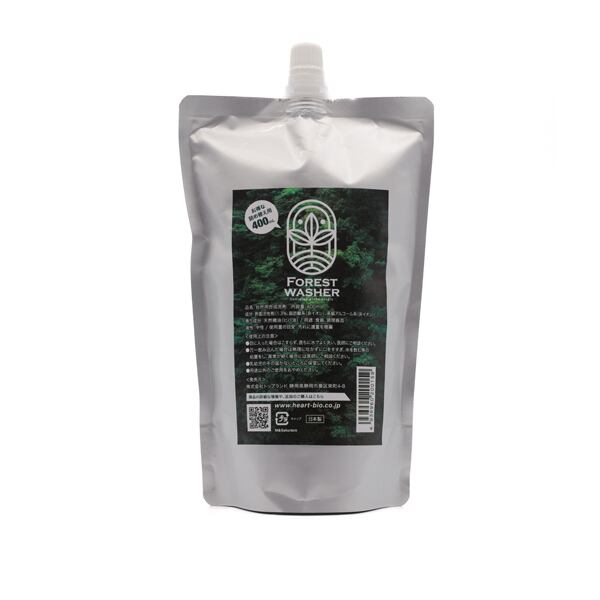 水の使用が厳しい環境で使える台所用洗剤「フォレストウォッシャー」詰め替え用400mLです。(本体ボトル2本分)